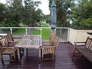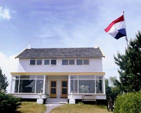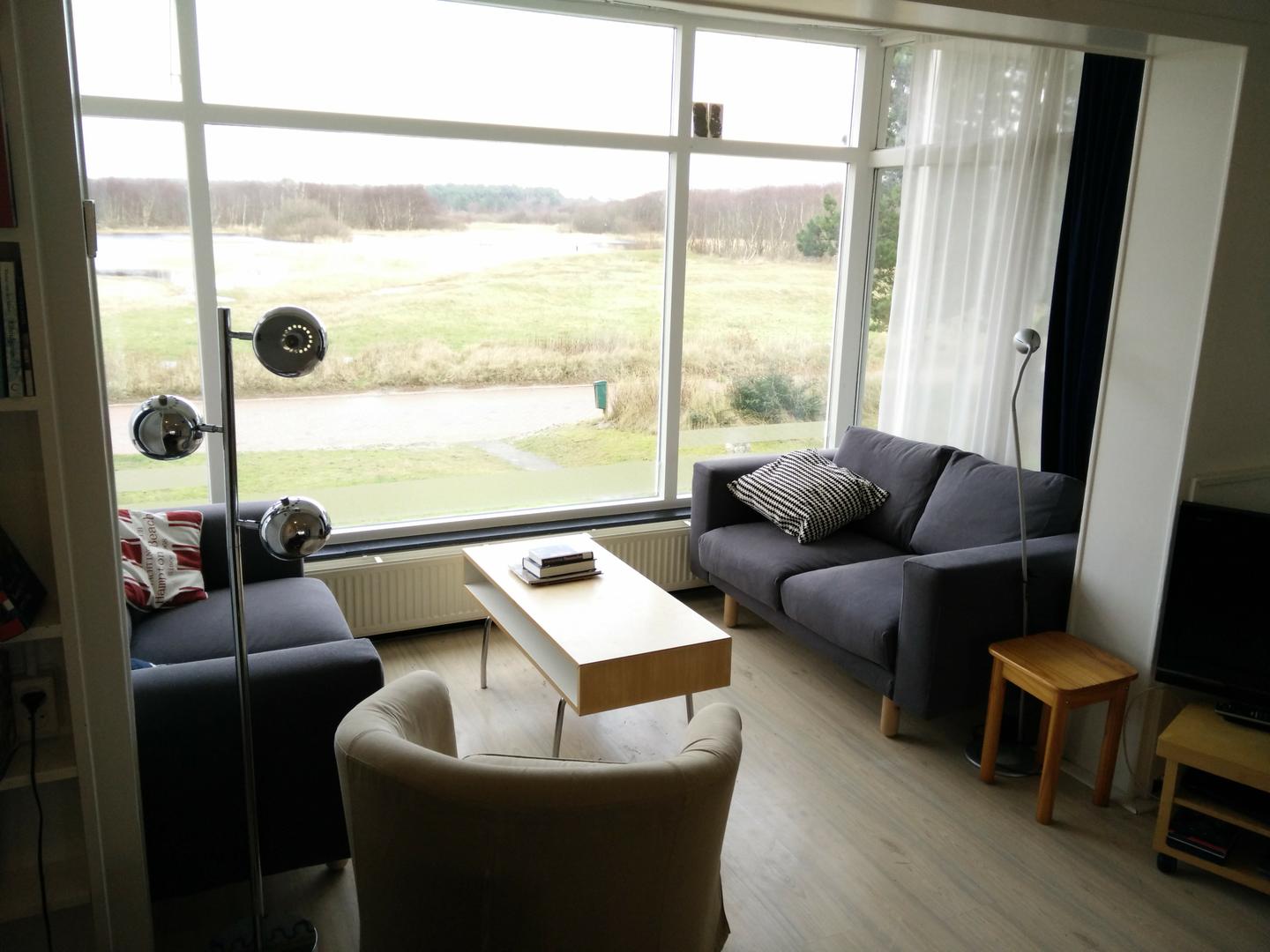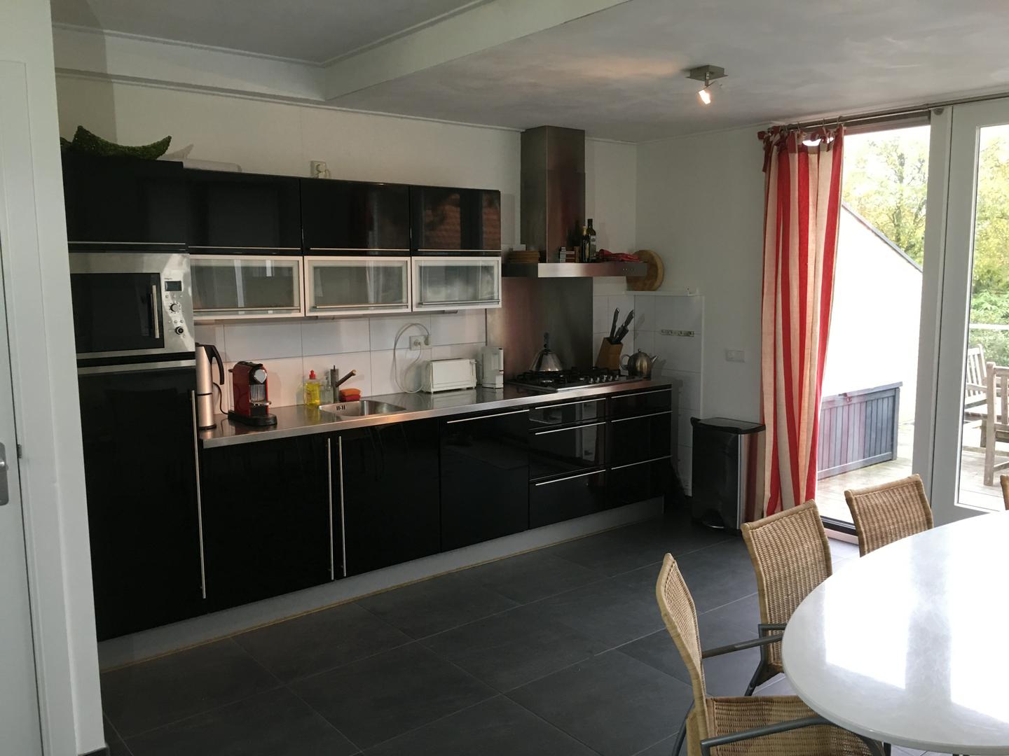 Op de begane grond aan de voorkant van het huis de erker voor de ochtendkoffie, in het midden van de kamer de televisie 'hoek' en aan de achterzijde de open keuken en de eethoek. Buiten het terras met lounge set op het zuidwesten voor middagzon en avondborrel.