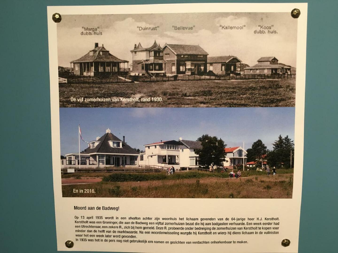 Tim wekt op het eerste gezicht de indruk te zijn weggelopen uit een VINEX wijk maar niets is minder waar. In de vroege jaren '30 van de twintigste eeuw liet Koos Kerstholt een vijftal zomerhuizen aan de Badweg bouwen waaronder Tim om te verhuren aan badgasten. In 1935 vond hij een jammerlijk einde en werd uiteindelijk vermoord aangetroffen in een regenton achter één van de huizen. Tim heette toen nog Bellevue en was nog niet uitgebouwd.